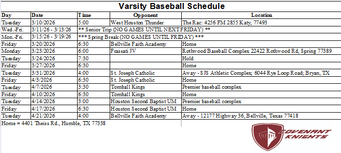 Varsity Schedule